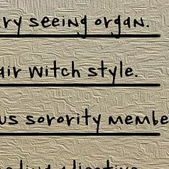 Each line has a yellow and blue letter (with one exception). You want to find the letter that, alphabetically, comes between the two marked letters on each line.