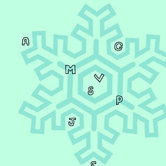 Each part of the snowflake corresponds to a letter in the alphabet. Starting at "A," you can start constructing an alphabet by going clockwise with "B" being the upper portion of the snowflake branches. Continue moving inside the snowflake and making more of the alphabet. The symbols above using this alphabet make "GRETCHEN" -- the name of the child.