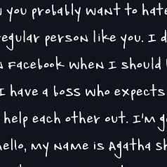 Final Solution: Agatha not only drops her full name, but also makes sure to let you know she's on Facebook. You might want to look her up...