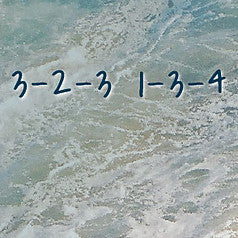 This Book Cipher corresponds to the stanza on the front of the card, using the format Line-Word-Letter. It spells out 'Pattern Recognition'